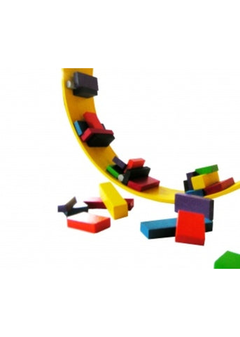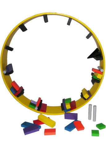 Everyone starts with seven wooden pieces. On a turn, place one of your pieces somewhere within the wheel, which might move and rotate as a result! If any pieces fall out of the wheel, you must add them to your supply, so try to keep the rolling of that hamster wheel to a minimum...